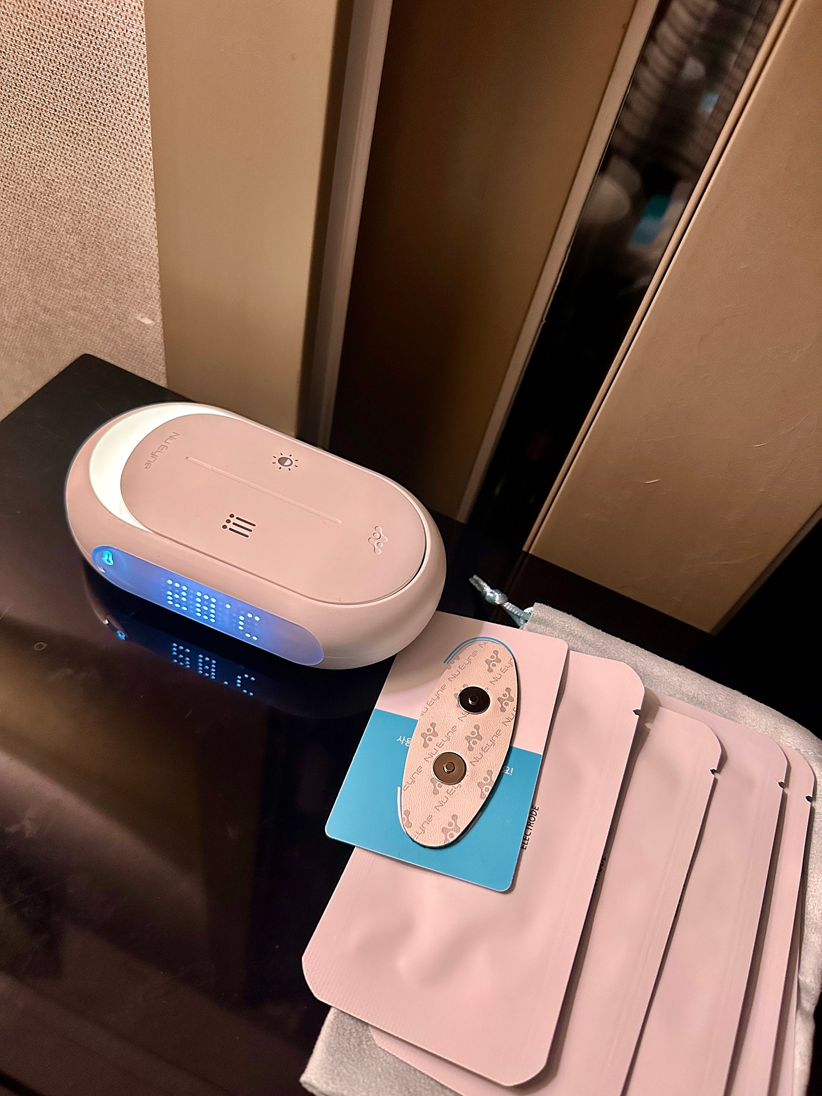 택배는 생각보다 빨랐고, 포장은 단단했습니다. 박스를 열자 본체/베이스스테이션, 케이블, 전극패드, 간단 설명서가 정리된 상태로 들어 있었고, 구성품 체크가 쉬었습니다. 아이가 장치에 예민할까 봐 걱정했는데, 디자인이 무난하고 심플해서인지 첫 반응이 아주 나쁘진 않았습니다.